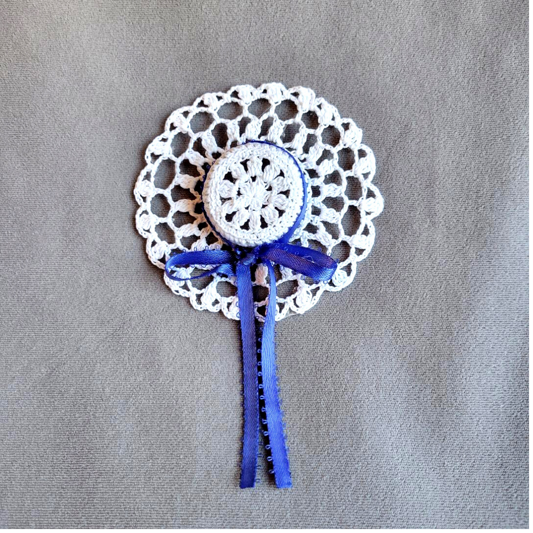 This bonnet was handmade with 100% Mercerized Cotton and adorned with a pretty bow.