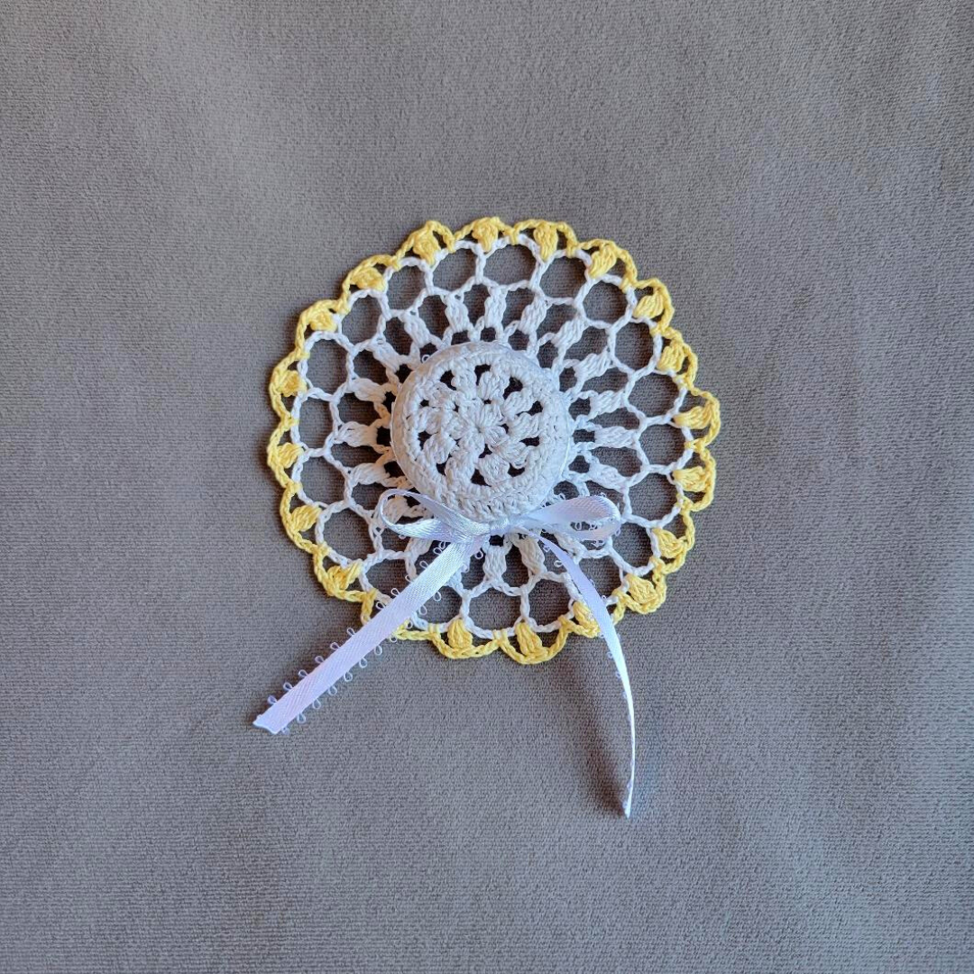 It was crocheted and stiffened with cornstarch with care and should be considered an heirloom to be enjoyed for generations.
