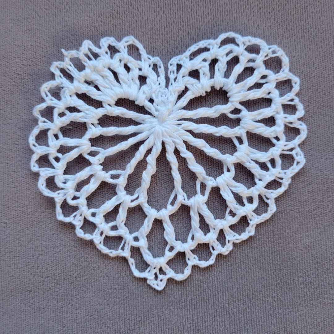 the heart is made using 100% mercerized cotton in the color or colors of your choice.