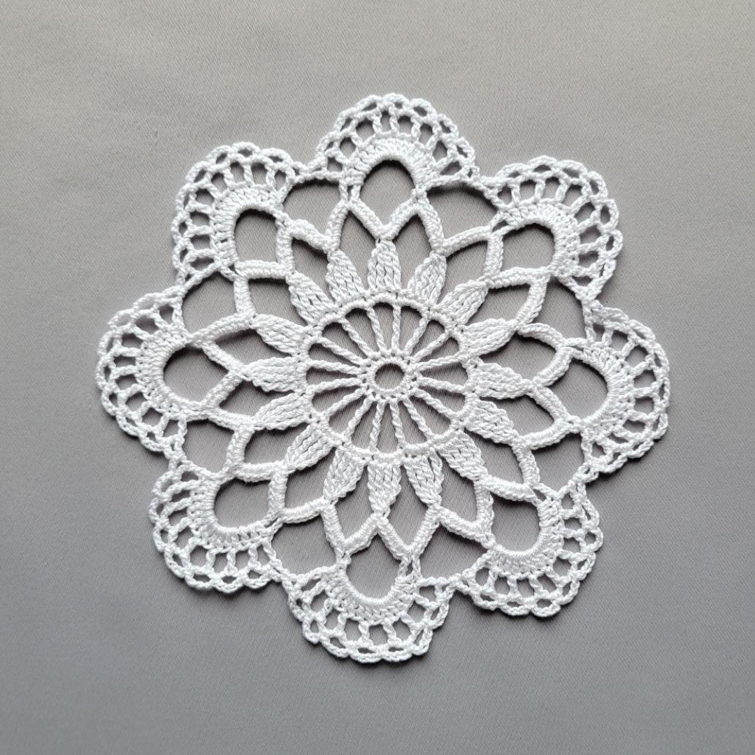 The Septet name actually comes from the pattern. It was made with seven doilies sewn together. This is a cute cross section of a larger pattern.