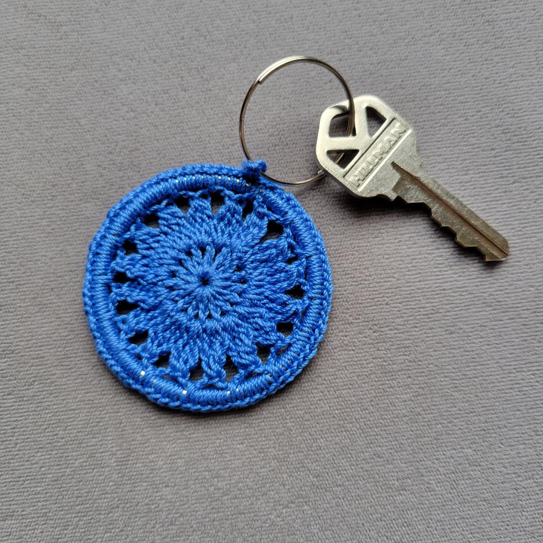 materials used & suggested: sz 7 crochet hook , sz 10 crochet cotton in blue, 2" steel ring, & needle to weave in ends