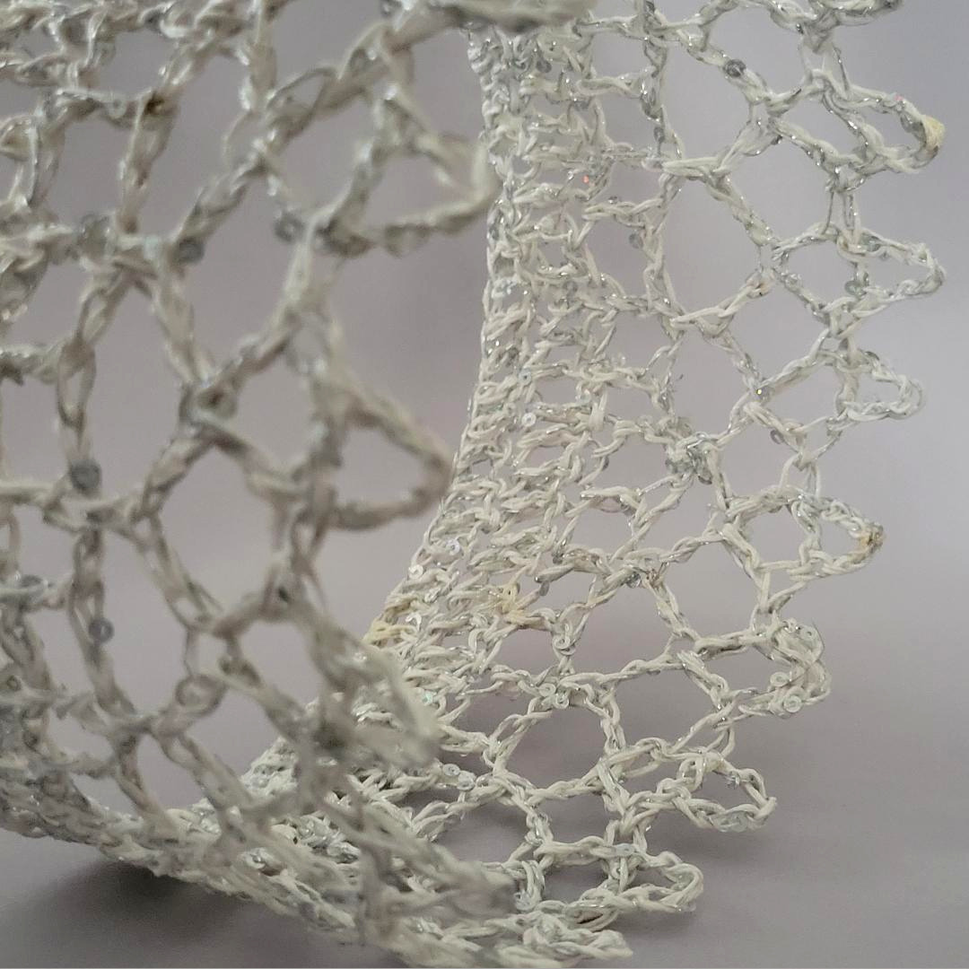 Each crown is crocheted with two strands of mercerized crochet cotton thread or a thread/metallic mix, and a strand of lycra/sequins.