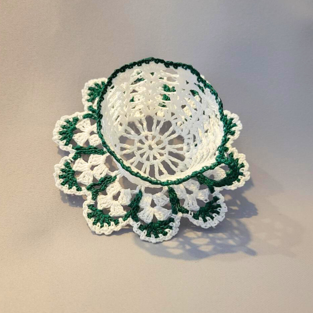 It was handmade with 100% Mercerized Cotton and stiffened with cornstarch.